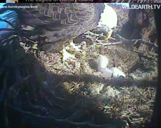 Isn’t little Phoenix getting big? The first thing I do when I get up in the mornings is check in on how they’re going. It amazes me how deft the mother is at feeding the chick – it’s hard to get exactly the rise sized piece to feed when your only implement is your beak! The clarity of the webcam is astonishing – you can see small insects flying around the nest!