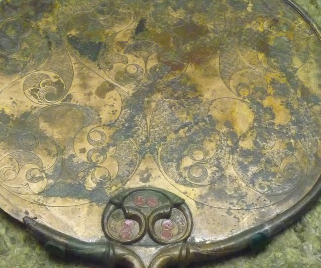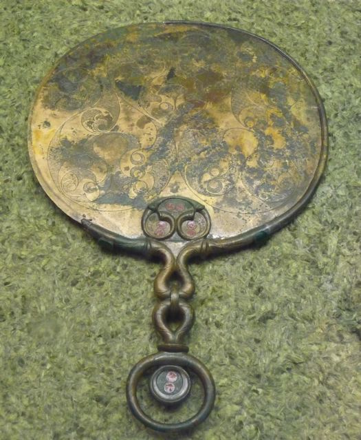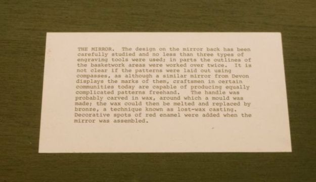 Here is a mirror they found in the same Iron Age tomb. The museum’s notes say: