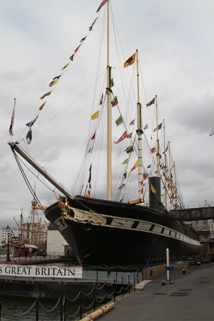 The SS Great Britain was a prototype, the first iron ship; she had a screw propellor, an iron hull and was powered by steam from a massive engine as well as having a full complement of sail. She travelled thirty two times round the globe during her working life, sailing nearly a million miles in all. A large part of her working life was spent taking emigrants to Australia and she also carried troops to the Crimea.