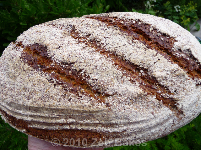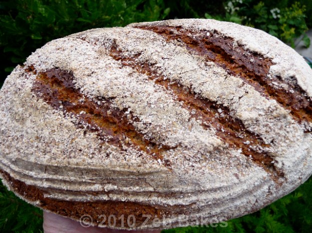 This Jeffrey Hamelman rye bread was made with Bacheldre organic stone ground rye, a much coarser sort of rye than the usual Shipton Mill one I use. This bread is made with a rye flour soaker and a rye sourdough.