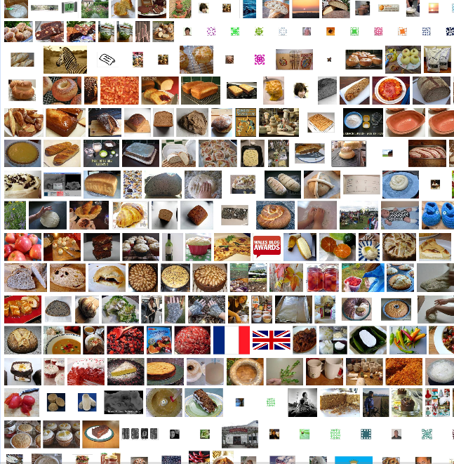 This is just a quickie…and something you can do at home as they used to say on Blue Peter – if you’ve ever posted pictures on a blog post or on a forum or anywhere on the net. Google the name of your blog or your own name or however you appear on the net and select the images option. See how connected we all are – it’s mind boggling! I see the gravatars of my friends, the pictures of their breads, and all sorts of connections I had forgotten, and some mysterious people who I don’t know at all of course. Today there was a picture of a zeb-ra! Do it again a week later and marvel at how it changes, a kaleidoscope of images, of bowls, and vegetables, of dough and cake, and fruit and leaves, there’s a rabbit, a dog in reindeer ears, there’s a New York chef, and today knitted socks – such fun!