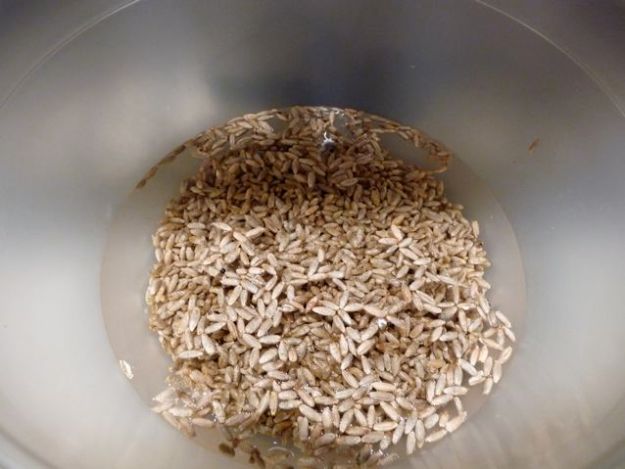 The formula asks for ‘rye chops’ and ‘rye meal’ . These are different cuts and grinds of rye. English supermarkets usually stock one variety of rye flour if you are lucky. No choice at all as to grind, you can’t usually even get light and dark rye. My friend Mandy came to the rescue and brought me lots of bags of rye from Germany in different grinds, though we were both guessing what was required. Nils at Ye Olde Breade Blogge advised me too and took a picture to show me what coarse rye meal looks like in his Saftig Kerniges Roggenbrot post. Nils is brilliant on rye breads!