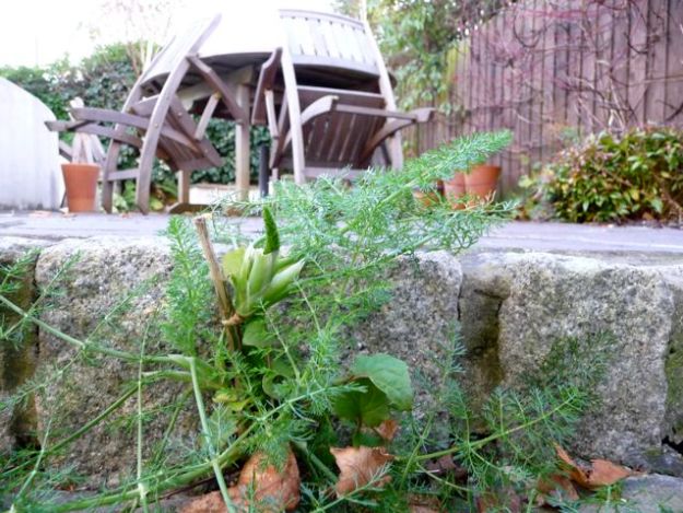 In the winter garden, a rogue fennel seedling has inserted itself in the patio step and is waving its little fronds defiantly against the cold. I wonder when the first fennel was grown here? I always thought it was an Italian plant, but maybe it came over with the Romans?