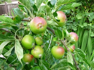 We only have one apple tree, no idea what variety, but somewhere between a cooker & eater; large apples, better for cooking earlier in the season (but not tart like Bramleys) & eating after storing for a month or two during which the sweetness seems to develop. The harvest was so bountiful this year we still have loads left, though by now they’ve gone a bit soft to be pleasant as eaters. I wonder if they could still be dried? I might also try making some into wine, once Carl Legge gets his post up!