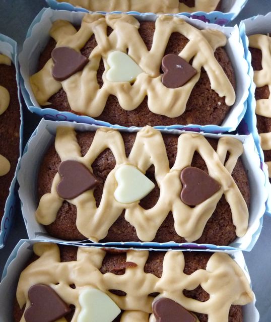 I love the notion of splodgers uniting and holding fast, we could have a Splodgers Union and found a Grand Old Splodgers Hall (GOSH) for short – or summat…My one and only go at piped icing was for one of my daughter’s birthday cakes. The cake had got stuck in the pan but I thought decorating it would disquise it. I was going well as I ‘deftly’ folded greaseproof paper into a piping bag, filling it made my confidence wobble and then when the whole thing did a ‘bombs-away’ on me, I became a little unhinged. So, I am very impressed by your cakes and they do look so lovely in their cases – I love things decorated with hearts. PS: when the flaming birthday cake was presented to the gathering of little people, one of Sally’s friends said “Mummy, do I have to eat that”!!
