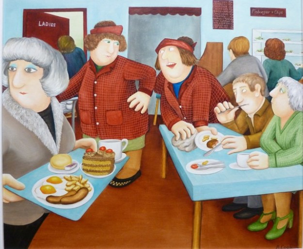 Despite being largely snubbed by the art establishment, Beryl Cook became well-loved by the general public following a South Bank Show about her in 1979. In January 2004 there was a two part cartoon called Bosom Pals which had Dawn French, Timothy Spall and Alison Steadman giving voice to her characters. You can find bits of these on YouTube if you look for them.