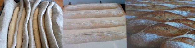 Celia, I have just been back to Dan’s forum and reread an old post where I made the baguettes in the header pic. Guess what? I used to slash the other way round, from 1130 to 1730, somewhere along the line I’ve become a strange underhanded sort of slasher and now slash the other way. I think it’s a bit like watching people draw with charcoal, they hold that in funny ways too. The important thing is to have an angle, as you know, when you move the blade through the dough, something like slitting an envelope open. When I think about it, I often turn the dough sideways on the worktop too… Us lefthanders have a lot to think about. That’s why I like making round bread and don’t write many ‘how to’ posts :)