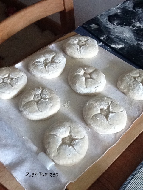 Dubiously I continued and here are the photos from the final stage when I have flipped the cut rolls onto the peel to go into the oven. I also only heated the oven up to 240 C or so, I couldn’t believe that it needed to be that much hotter. Next time however, I am going for the hottest oven I can manage.