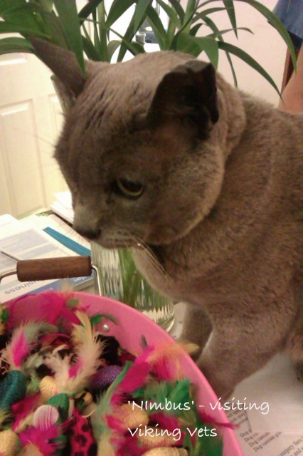 Well, I think he is quite smart, he’s made it to 16 years of age, he survived being out and about on a busy main road, being abducted by us (to the vets) and back again. He was a very cool cat, calm, friendly, self contained and I think he has life sussed. I don’t know the whole story of the owner and the broken leg, maybe the cat got shut out when he expected to be let in and so took himself off to the newsagents to keep warm…