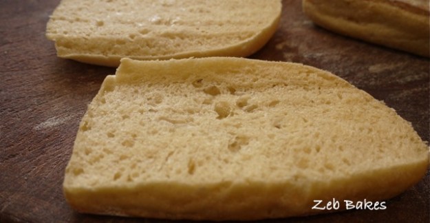 I started the dough last evening and completed them this afternoon. I didn’t hold out much hope for a successful end as the dough didn’t seem to rise much during the first or second rise. However, I carried on as instructed and was suitably impressed with the way they rose when put on the griddle for the initial baking. After the second bake in the oven they looked really good and after cutting open the smallest one to try it we are happy with how they taste too!