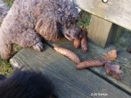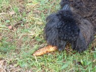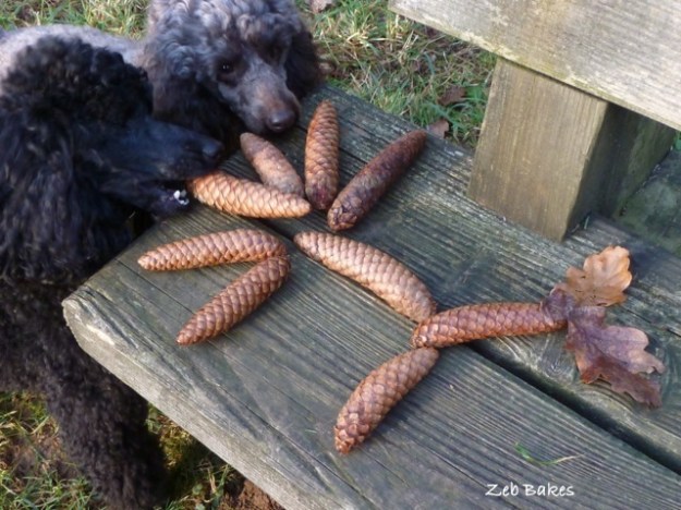 Poodles like anything that they think you are paying close attention to. They are nosy and acquisitive. When Zeb was a pup and I was trying to plant things out in the garden he would sneak up and nab the discarded pots and run away and chew them up. They didn’t actually eat my lovely cones – more destroy them :)