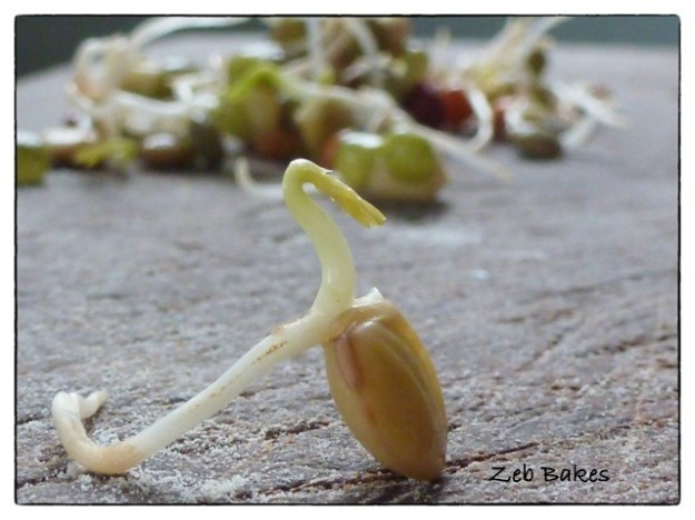 I haven’t got a hard and fast version of this bread in recipe form, but you could always make Dan Lepard’s splendid sprout bread which was the inspiration for this bread and which I made a couple of years ago. You can find the recipe for that here or in his new book Short and Sweet.