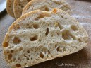 You will find that if you bake the bread relatively early it will often rise more in the oven, but that the crumb may be a mix of close small holes and large more open ones, with a thicker dense layer at the bottom of the loaf; that loaf should have proved for longer, it is under proved. I see a lot of loaves like that being shown in photos. They look beautiful and dramatic from the outside but inside they could be airier and more evenly developed. This maybe is the hardest thing to judge, when to put the dough in the oven. I don’t always get it right I have to say. The loaves in this post could have gone for another half an hour to forty five minutes I reckon and the crumb would have been more open which is why I am talking about this. - Dusting the top of the loaf with a little flour before slashing can be useful; dusting protects the top of the loaf in the oven and provides a nice colour contrast between the open area of the slash and the top. I think it dries the skin slightly as well and can help the knife not to stick to the top of the dough, though if it is a very hydrated dough the knife will drag inside anyway. There is a certain element of sang froid involved in slashing and I know, from experience, it can be one of the most frustrating moments for a home baker.