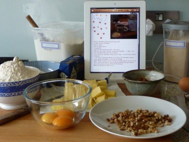 I just had a googly look for the original and found a BBC Good Food recipe for rosemary and walnut shortbread, does that ring a bell? I hope they don’t mind – googling walnut shortbread threw up dozens of recipes, from Delia to Hairy Bikers to bloggers galore. I like your version of this recipe because it is short and easy and makes scrumptious biscuits that don’t spread and have nice smart edges and you sent them to me in the post when I needed biscuit comfort xxx