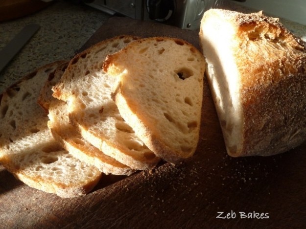 The formula for the loaf is the Weekly Sourdough, using the spelt for the additional flour part. This time I mixed the dough in the evening and left the whole lot in the fridge overnight, shaped it when it was cold in the morning and left it to rise before baking. Dough is remarkably flexible. Brian baked these off and did the slashing so they look a bit different from usual.