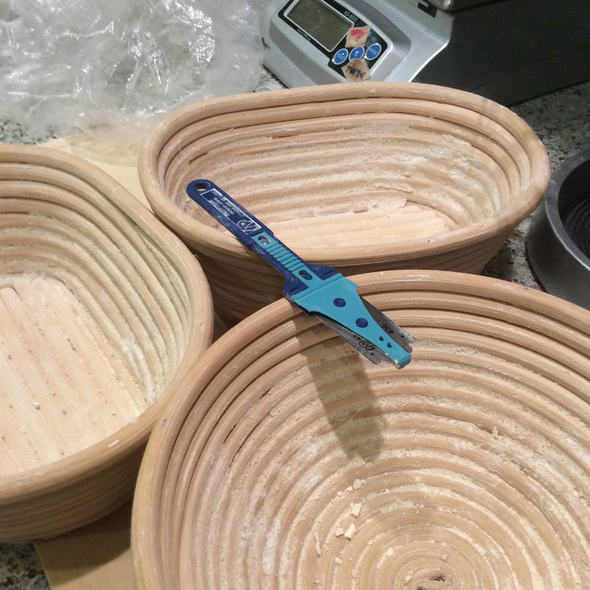 High hydrations, while I love the taste and soft crumb, the getting to that point drives me crazy, too sloppy, too messy…not enough bench space! So…I stick to a regular roll em out, plop them ratio.