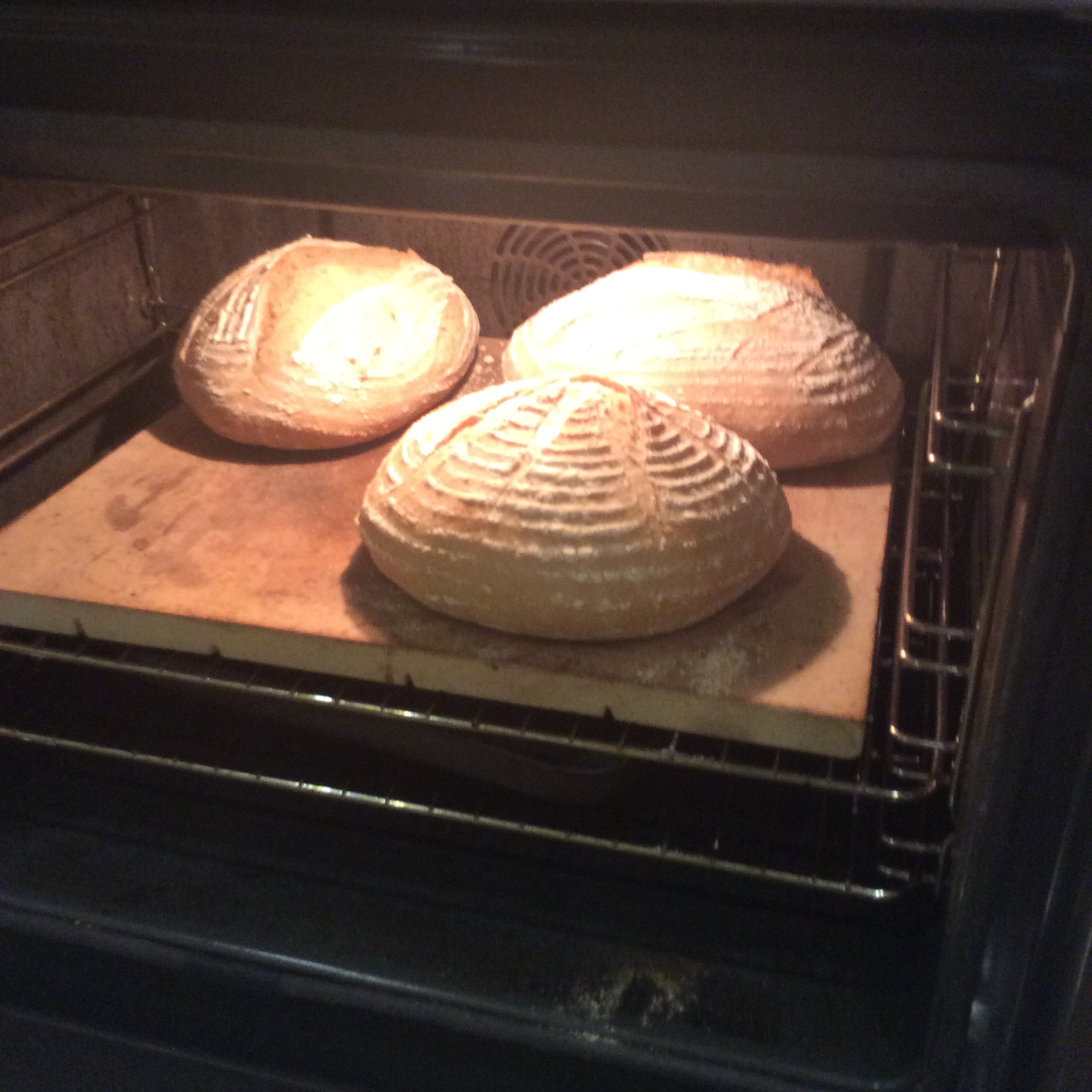 - I tend to make three small loaves these days, 2 x 600 and one smaller one with the leftover dough, about 500 g as they fit on my oven stone (as in the image below) and each loaf gives enough for toast and a lunch sandwich for two people.