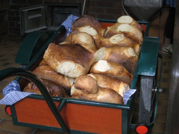 Allison sent me these pictures taken by Christina Doll, a friend of hers in Germany in answer to this post about culinary desires. They show a communal bakery and the oven there. I think lots of home bakers would love to be able to share a space like this. I know I would. Thank you for sharing these pictures!