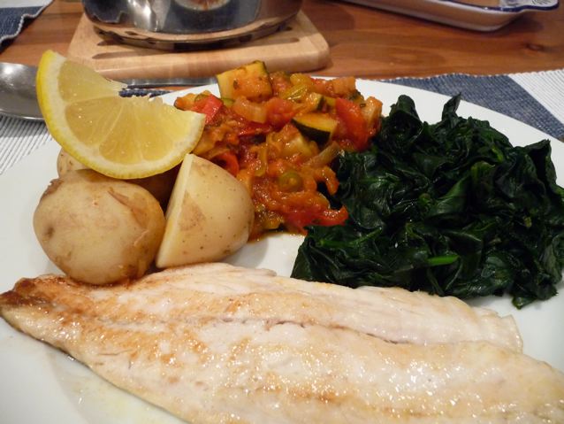 Tomato hotch potch vegetables – made of a box of left over chilli tomato sauce found in the freezer, leeks, garlic, courgette, red peppers, green beans and so on…