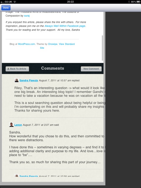 Trying to read comments on a blog on ipad