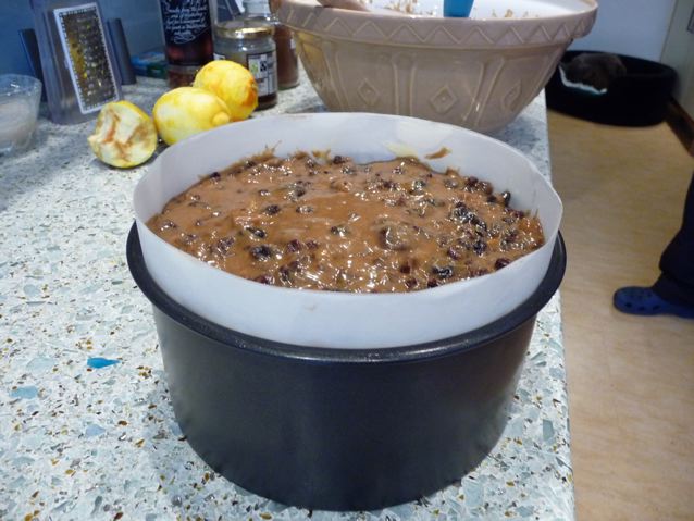 Christmas cake, christmas cake, mix and put in tin. This is Mr Lepard’s caramel cake and I baked it today. I really enjoyed the bit where the cream hits the caramel and turns to liquid fudge. I quite wanted to stop there and just eat the whole lot with a spoon, but I didn’t…