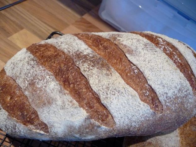 I’m going to start by being pernickety. This bread, and the two variations in this section of Bread by Jeffrey Hamelman, are confusingly called Whole Wheat breads. They are in fact made with 50% wholegrain flour and 50 % strong white bread flour. In England the term wholemeal is used to describe a bread made only with wholegrain flour and it is one of the few bread names that is covered by